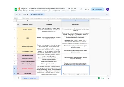 Приклад конверсійної воронки з описом