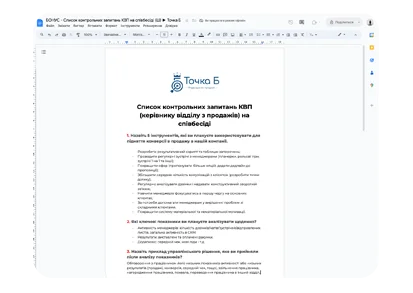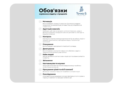 Список обов'язків керівника відділу з продажів (КВП)
